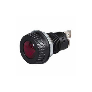 Red 17mm panel hole and 6.3mm terminals. Re-lamped from front of panel. 2 watt bulb max.